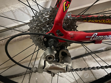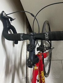 Bici da corsa Originale Cannondale SAAD 3 Made in usa utilizzata da Team ufficiale Saeco come si vede dai loghi originali sul telaio. Taglia M, alluminio con forcella in carbonio primi anni 2000. Cambio schimano ultegra 9v perfetteo. Guarnizione centrale Bianchi. Appena fatta revisionare completamente dal meccanico, con cambio di fili freno e cambio, copertoni, nastro manubrio e tutto il resto. Conservata perfettamente con telaio rosso perfettamente conservati loghi e scrite che ne certificano l'autenticità. Appartenuta a team ufficiale saeco.