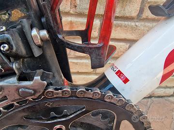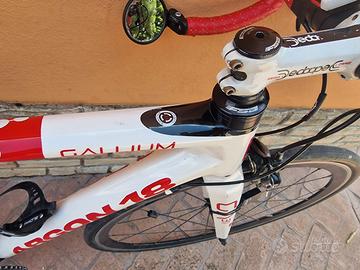 bellissima bici ultra leggera, molto semplice da usare adatta per chi vuole iniziare ad andare in bici, per altezze da 160 a 170/175 è perfetta. il telaio è realizzato in fibra di carbonio ad alto modulo (7000 Hm), progettato per coniugare leggerezza e rigidità. nelle foto ho messo anche tutti i segni che presenta legati al normale utilizzo amatoriale. modello della bici gallium ga31 cambio manuale modello campagnolo veloce.