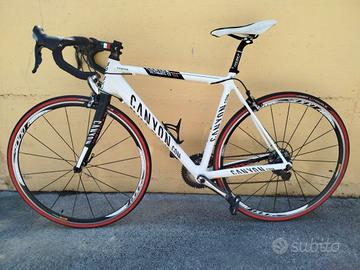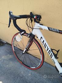 Vendo per problemi fisici la mia bici da corsa canyon, taglia 54 (io sono alto 1,74). Bici full carbon, 10v, guarnitura durace (rapporti 34-49 /11/30 sostituiti pochi km fa quindi ottimi anche per la salita se non si ha molta gamba) cerchi citec 3000 aero, sella memory, pedali a sgancio rapido seminuovi shimano. prezzo 1200€. visibile ad osimo/ancona, solo consegna a mano...non spedisco.