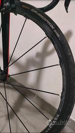 Ruote: Fulcrum Racing Zero Nite (considerate il TOP delle ruote in alluminio, corpetto in carbonio con cuscinetti ceramici. Prezzo nuove sui 900,00 €)