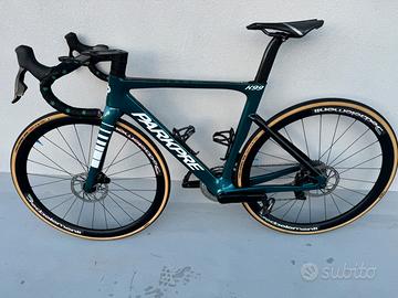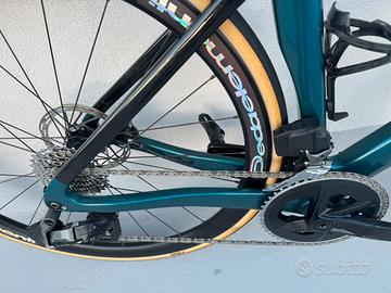 colore telaio ottanio metallizzato e nero Bici da corsa parkpre k99 Telaio aereo in carbonio colorazione ottanio metallizzato cavi totalmente interni Motata interamente sram rival ( gruppo e freni) Monta Sram rival elettronico 12v guarnitura Sram rival 35/48 e deragliatore sram rival catena sram red manubrio aereo deda vinci in carbonio reggisella in carbonio e sella full carbon ruote in carbonio deda tubless 38 mm canale interno 21 la bici e perfettamente sana e coperta per la maggiore con pellicola protettiva trasparente presenta 3/4 piccolissimi di normale utilizzo segni dovuti da trasporto in auto o salti di pietroline STAFFA GARMIN, PORTA BORRACCIA E PEDALI NON INCLUSO PREZZO TRATTABILE