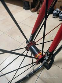 Come da titolo vendo bicicletta con telaio in monoblocco in carbonio Cinelli Estrada,la bici ha qualche anno ma è perfetta in tutto,tenuta in modo maniacale. Taglia M adatta fino a 175cm di altezza. Ruote mavic ksyrium super light. Reggisella,pipa e manubrio in carbonio. Completa di pedali look.