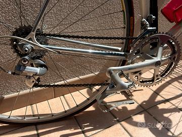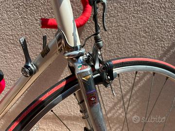 Bici da corsa anno 1987 Dancelli , facente parte delle bici storiche definite Eroiche , cambio , freni e pedali Shimano 600 Ultegra Tricolor , pacco pignone a 8 rapporti , moltiplica Biopace 52/42 , cerchi Mavic . Compresa di pompa originale , contachilometri , e pneumatici nuovi . Taglia per persona alta circa 165/170 cm