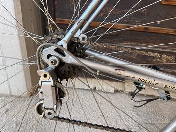 Vendo Bici da corsa vintage , diametro 28, con telaio Colnago Super realizzato con tubazioni di pregio negli anni 70 e 80. Si tratta di un telaio molto bello, tutt'ora ricercato dai collezionisti. la misura da tubo orizzontale centro - centro è 51 cm mentre da tubo piantone centro centro è 50 cm.