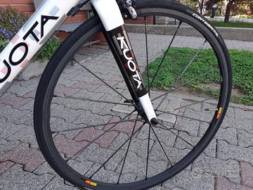 Vendo bici da corsa Kuota Kom evo in carbonio del 2013 con gruppo completo shimano Dura ace 10 vel. Ruote mavic r-sis. No cadute perfetta. Prezzo poco trattabile.