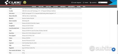 Vendo per inutilizzo bici da corsa Cube Agree c:62, taglia 58, usata in strada per circa 400km, praticamente nuova. Telaio in carbonio, montata 105 Di2 (cambio elettronico), 24 velocità. Guarnitura 50x34 Pacco pignoni 11-34 Freni a disco Shimano 105, 160mm. Dettaglio componentistica nella foto allegata. Non spedisco, ma disponibile a consegna in zona Sondrio - Colico - Tirano - Edolo.