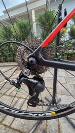 bdc in carbonio, gruppo completo 105, 12v, 34-50, 11-32t, ruote mavic copertoni 28, buone condizioni, non necessita di nessuna manutenzione. Bici molto comoda, adatta allenamento e lunghi giri. Per altezza 176-182.