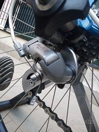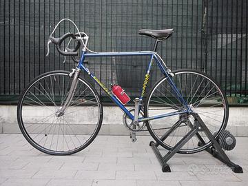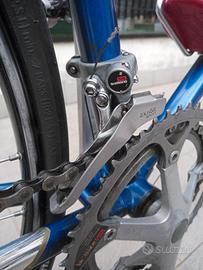 Bici da corsa Dancelli anni '90. Monta gruppo completo Shimano EXAGE Sport. Misure: Tubo piantone cm56 (centro-centro); Tubo traverso cm 55 (centro-centro). Fornisco completa di attacchi Shimano SPD montati nuovi e usati tre volte, Sella TURBO. Regalo computerino di bordo. Il pignone posteriore è stato modificato per accogliere ruota dentata da 25 non presente nella rapportatura originaria (la ruota da 11 denti viene fornita in dotazione); uno dei due pedali SPD è stato montato sulla pedivella con l'ausilio di locktite a causa del filetto non perfetto per presenza di ossido in fase di smontaggio dei vecchi pedali (anch'essi forniti in dotazione). Tacchetti freni e copertoni non freschi. Accetto offerte e vendo solo dopo presa visione del mezzo a Genova. Non spedisco; ma posso consegnare entro i 100km a 25 €. Prezzo leggermente trattabile. La borraccia non è in vendita. Grazie