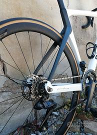 Uno dei telai più leggeri in commercio 730 grammi. Bici nuova non presenta alcun difetto meccanico o estetico allestita con shimano ultegra elettronico 2x12v 34/50 pacco pignoni 11/30. Ruote bontrager carbonio aeolus pro 37 disk center look, gommata con tubeless. Sella selle italia marcata De Rosa con telaio in carbonio. Manubrio integrato 42/100 vision 5d evo. Prezzo in negozio 8850€