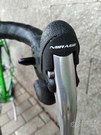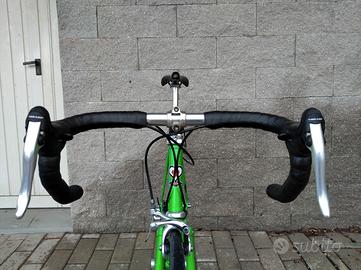 Bici da corsa De Rosa Dynamic Acciaio. Taglia 54 Montata Campagnolo Mirage-Veloce 3x9v. Guarnitura 52-42-32. Cassetta 11-28. Ruote Ambrosio Balance. Mozzi Campagnolo coni e sfere. Gomme Michelin lithion II Sella fizik Pavé titanio.