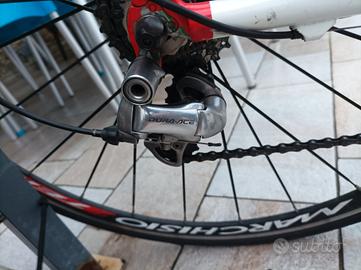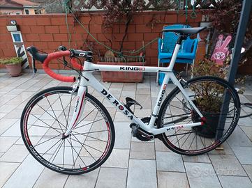 De Rosa king 3 taglia 56 per altezze da 1,78/1.83 circa gruppo Shimano durace 10 velocità, ruote fulcron con mozzo in carbonio ancora centrate alla perfezione , sella fiziky , bicicletta totalmente in carbonio tenuta in maniera maniacale totalmente da sfruttare , cedo per motivi di spazio siccome sono passato ai freni a disco , a parte vendo anche un