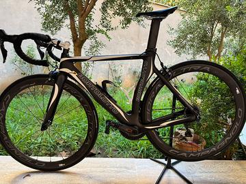 Sono un Triatleta e la utilizxo per le Gran Fondo come allenamento e Half e Full Distance nel triathlon, appena rie trati dall’Ironman di Spagna. Ruote in Carbonio con Profilo Alto, Guarnitura per spingere in discesa e pianura, cambio elettrinico 10 Ultegra , manubrio in carbonio… insimma una duper bici, mi è arrivata la nuova e quindi “svendo” auesta ho pagato solo le ruote 3.500 € .. non aggiungo altro.. tutti i particolari li vedete in foto e se volete vi mando un video. La scocca ovviamente non è di quelle commerciali ma realizzata appositamente cin le geometrie esatte per il Triathlon ( leggermente spostata in avanti ). Tutto molto orofessionale e nulla lasciato al caso… l’ho costruita nel tempo e ora penso che sua una buci da oltre 5k…taglia 53 sono altro 1.77, cavallo 80cm e sella al momento a 90 cm, regalo appendici da manubrio e porta borracce da sellino..