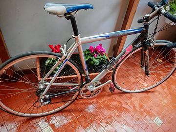 Vendo bici da corsa Eleven, telaio in alluminio con forcella in carbonio, gruppo Shimano base (Sora o similare). Usata, con segni d’usura normali, ma nel complesso solida. Il reggisella non è carbonio (a differenza delle altre bici), ma la componentistica è compatta e funzionale. Problema: la catena è arrugginita per esposizione all’aperto. Occorre sostituirla: le catene nuove costano tra 10 e 25 € online. Motivo del prezzo: vendo a buon prezzo per permetterti la sostituzione, ma il costo è contenuto e la bici è comunque valida. Ideale per chi vuole una bici da corsa entry-level da ritoccare e usare subito. Euro 150 prezzo trattabile.
