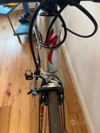 Buongiorno come da foto vendo Specialized SL4 telaio completamente in carbonio, e componentistica durace, peso totale 6,8 kg, piccoli segni di usura come da foto e una parte sverniciata ma non compromette il telaio, coperta da adesivo nero comprata usata ad ottobre a 1000 euro vendo per cambio a freno a disco, bici ottima, Tutt'ora viaggiante catena nuova.