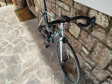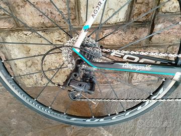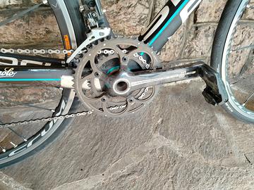 Bici da corsa Focus Izalco pro AG2R del 2014. Taglia XL, adatta per un' altezza da 180 cm 188 cm. Montata Campagnolo Chorus. Telaio in carbonio, ruote Fulcrum racing zero. Tenuta benissimo, qualche graffietto sul carro posteriore, pacco pignoni cambiato l'anno scorso per una rapportatura più agile, deragliatore posteriore cambiato l'anno scorso con gabbia lunga.