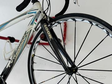 Bici da corsa: - Telaio fondriest domino full carbon - Forcella time carbonio - Cambio sram Rival 10 v - Pedivella frm carbonio 170 mm - Ruote mavic - Taglia xs 49 - Sella smp (cambiata da 1 anno) - Copertoncini da 25 - Corone 50 /34 Pronta da subito, prezzo leggermente trattabile.