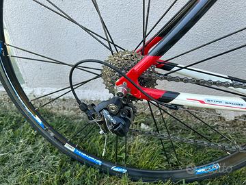 Vendo bici da corsa fondriest rp3. Cambio shimano 105. 20 rapporti. Telaio alluminio con alcune parti in cavonio. Taglia S io sono alto 1,65. Qualche graffio dovuto a qualche caduta immagino del precedente proprietario. Nel prezzo anche rullo per allenamento in casa della decathlon e scarpe tg 42 della shimano.