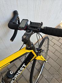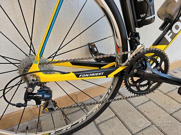 Splendida bicicletta da corsa della Fondriest, modello TF1 con telaio e forcella in carbonio, cerchi in alluminio con gomme Vittoria 700x28, cambio Shimano 105 2x10 velocità , anteriore 50/34 posteriore 11/32. Taglia XL , va bene per persona alta da 1,74 cm. a 1.88 cm. Perfetta e senza nessuno striscio, usata pochissimo ed in condizioni di meccanica ottime. Freno Rim Brake. Revisionata e controllata da poco tempo, con anche catena di trasmissione nuova. Completa di borraccia e barattolo portaoggetti per foratura e con una camera di scorta, + porta telefono al manubrio, nonchè faro posteriore lameggiante 5 led , viene incluso anche computer collegabile al telefono della Sigma , modello Rox 4.0 del valore di 80,oo €uro . Anno di costruzione 2024. Disponibile per qualsiasi visione e prova. Possibile eventuale spedizione con pacco tracciato, costo di 40,oo €URO