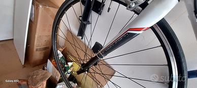 Bici da corsa BWin Triban 5 (per altezza cm170-180 circa) telaio in Aluminium Carbon Frame , ruote da 32" , sempre riposta su staffe in garage , tenuta in maniera maniacale , vendo causa inutilizzo.