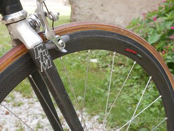 Bici da corsa FRM Race Flash 26" in alluminio Easton, con ruote in carbonio Zipp 310 da 26" con tubolari da sostituire, gruppo misto Shimano Dura Ace e FRM con parti in titanio. Per persona piccola o ragazzo. Molto leggera.