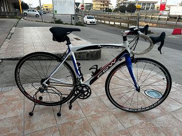 Vendo bici da corsa FRW modello HUNTERS HILL - ROAD Telaio MONOSCOCCA in CARBONIO 12K (taglia M) Forcella in CARBONIO Light Gruppo SHIMANO 105 10v Manubrio in carbonio Sella al gel sport Pedali a sgancio rapido Bici pari al nuovo