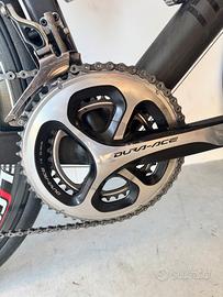 Vendo bici da corsa full carbon misura 58 per altezze 1.78-1.88cm Carbonio T1000 super leggero e resistente. Gruppo completo SHIMANO DURA-ACE 11 velocità Ruote in carbonio da 50mm di altezza Peso 7kg Visionabile per qualsiasi prova