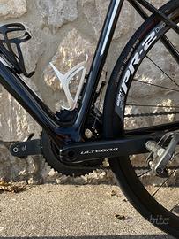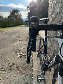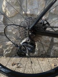 Telaio in carbonio. Corone anteriori e pedivelle appena sostituite, nastro manubrio e copertone posteriore Vittoria Rubino sostituiti ad inizio stagione. Fornisco con copertone anteriore nuovo. Movimento centrale sostituito lo scorso anno. Freni a disco meccanici TRP. Disponibile con sella originale, oppure sella San Marco CFX montata attualmente da accordare. Vendo con pedali Look montati attualmente. Bici in ottime condizioni
