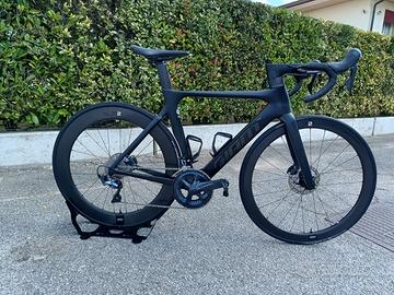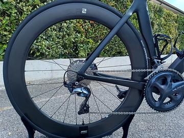 "Vera bici aero, pensata per chi cerca prestazioni su strada. La ruota posteriore in carbonio da 65mm assicura un'ottima tenuta della velocità sui tratti veloci, con un evidente effetto volano che aiuta a mantenere lo slancio soprattuto oltre i 35 km/h. La geometria del telaio, studiata per un bilanciamento ottimale tra rigidità e comfort, favorisce rilanci rapidi ed una pedalata efficiente. La bici si mostra particolarmente reattiva in salita, mantenendo una stabilità eccellente alle alte velocità e nelle discese più impegnative. Maneggevole, precisa, affidabile e sicura grazie ai freni a disco Shimano ULTEGRA".