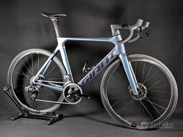 Giant Propel Advanced Disc 1 2022– Bici da corsa usata Prezzo: 2.699 eu Colorazione: Knight Shield / Reflective Rosewood Taglia: ML (lunghezza tubo orizzontale 570mm) Anno: 2022 Condizioni: Ottime Telaio: ADVANCED-GRADE COMPOSITE Forcella: ADVANCED-GRADE COMPOSITE Gruppo: SRAM RIVAL ETAP AXS Trasmissione: SRAM RIVAL 2X12 Guarnitura: SRAM RIVAL 48/35 (PEDIVELLA 172,5MM) Cassetta: SRAM FORCE 10-33 Ruote: GIANT SLR 2 DISC CARBON Sella: GIANT FLEET SL Reggisella: GIANT VECTOR Attacco manubrio: GIANT CONTACT SL AERO (100MM) Manubrio: GIANT CONTACT SL AERO (420MM) Copertoni: CADEX RACE (700x25) Portaborracce: INCLUSO Pedali: NON INCLUSI Per ulteriori informazioni o foto contattateci in privato, per scoprire tutti i modelli disponibili visitate il nostro sito. Visione/ritiro di persona in provincia di Brescia ma possibilità di spedizione in tutta Europa e Stati Uniti.