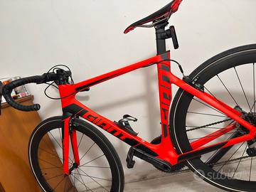 Vendo splendida Giant Propel Advanced Pro, bici aero top di gamma Giant, leggera e molto performante. Caratteristiche principali: * Telaio Giant Propel Advanced Pro in carbonio (top gamma) * Forcella full carbon aero * Gruppo Shimano Ultegra 11 velocità * Freni Giant SpeedControl SL Ti * Ruote in carbonio ad alto profilo *Peso circa 7,3kg *Taglia M Condizioni: Bici appena revisionata: * sostituiti pattini freno * tubolari nuovi * trasmissione pulita e controllata Pronta all’uso, nessun lavoro da fare.