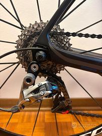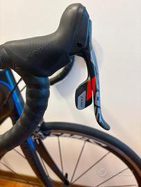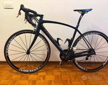Bici telaio carbonio colore nero satinato, misura S per 170/175 cm. monta tutto SRAM RED guarnitura 50/34 e cassetta 11/32 ( cassetta appena cambiata), ruote e mozzi MAVIC COSMIC ELITE, coperture quasi nuove, pedali LOOK inclusi, peso 7,1 kg ! Perfette condizioni , ottima per chi vuole iniziare.