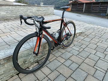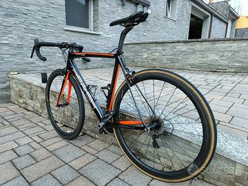 Hersh performance, telaio fatto in Italia da Sarto. Lunghezza tubo orizzontale 53.5cm, una taglia M. Gruppo completo Shimano Dura Ace 9000 11V, in perfetto stato. Corone 50-34 sostituite da poco, leva destra 11v sostituita anch'essa da poco, ruote in carbonio Ican da 40mm e coppia ruote in alluminio Vision complete di copertoni e pacchi pignoni. Entrambi i set di ruote sono sia per tubeless che per copertoncino.