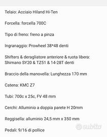 Shifters & deragliatore anteriore & ruota libera: Shimano SY20 & TZ51 & 14-28T denti