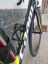 Bici da corsa con telaio in monoscocca in carbonio taglia M (per altezze intorno1,70 - 1,76m), cambio sram force 11v con guarnitura in carbonio, doppio set di ruote: fulcrum in carbonio e fulcrum racing 5 in alluminio. Buon stato di manutenzione, bici pronta all'utilizzo senza alcuna spesa. Catena e cassetta pignoni sostituite recentemente.