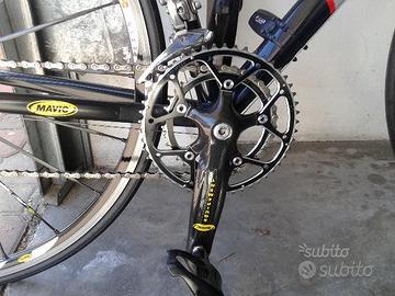 Vendo a malincuore bici telaio in alluminio 6110A misura 55 x 55 leggermente sloopin nera opaca con scritte gialla forcella Columbus Carve gruppo Campagnolo Record- Chorus 9v reggisella in carbonio guarnitura in carbonio 50 - 36 ruote Mavic Ksyrium elte attacco e manubrio itm millenium copertoncini nuovi, regalo cicl computer polar cs 200 con conta pedalate e cardio tutto senza fili perfetta denxa una riga mai caduto.