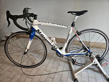 Bici tutta in carbonio taglia S da 1.65 a 1.75, perfettamente funzionante deve solo camminare sempre usata solo per rulli ottima per chi vuole iniziare e non spendere una fortuna o come bici invernale per rullo. La bici monta un campagnolo athena 11v e guarnitura Dure ace 53/39. Ruote in alluminio campagno. Regalo compreso nel prezzo il rullo che si vede in foto, il computerino con fascia cardio e il cavalletto per manutenzione delle bici. Non perditempo affaristi domande assurde è una bici funzionante 100x100 discreta altrimenti il prezzo non sarebbe stato questo.