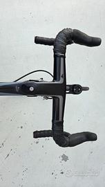 Come da titolo vendo bici da corsa totalmente in carbonio in taglia 50 (per persone alte da 160 a 170 cm – io sono alto 167 cm). La bici è in ottime condizioni e del peso di soli 7160 gr (pesata come da foto completa di pedali e tutti gli accessori, arriva tranquillamente a 7kg installando delle camere d’aria in lattice). La bici è così allestita: