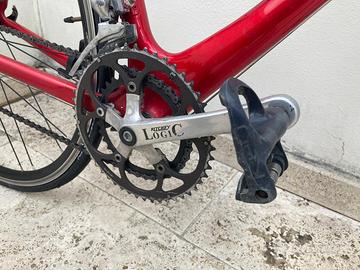 Vendo bici da corsa con telaio in carbonio Le Run, leggera e scattante, montata con gruppo Campagnolo Chorus 10 velocità (cambio posteriore) e comandi Campagnolo Veloce.