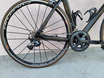 Vendo bici da corsa in carbonio fibra K1 marchio CUK, taglia M/L - 55 (la mia altezza è 178 cm.), gruppo Ultegra 6800 11v, guarnitura 50/34, pacco pignoni 11/28 Ultegra, ruote alluminio Fulcrum Racing Zero C17, tubeless Vittoria Pro Control, sella Fizik Arione cx, pedali Look Keo2max, movimento centrale e cuscinetti sterzo nuovi, tagliandata (sostituz. catena, guaine, ingrassaggio movimento centrale e cuscinetti sterzo) novembre '25. Prezzo trattabile.