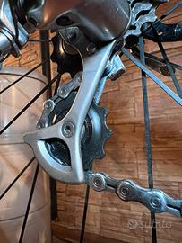 Vendo bici da corsa Merida Theorema 907 taglia M ( indicativamete 1.68 - 1.78 ) con telaio in carbonio, leggera e reattiva, perfetta sia per iniziare seriamente sia per chi cerca una bici affidabile già pronta. 🔧 Stato e manutenzione •Trasmissione appena rifatta: catena, revisionato deragliatore con pignoni e cuscinetti nuovi. Rapporti Corone 48/36 pignoni 11-27 •Guaine e cavi cambio nuovi •Cambio registrato e controllato 👉 Nessun lavoro da fare, pronta per pedalare ⸻ ⚙️ Componenti •Telaio in carbonio •Gruppo Shimano Ultegra 10s •Ruote Mavic Ksyrium •Copertoni Continental Grand Prix 4 Season in ottime condizioni •Pedali sgancio rapido Look •Doppio porta borraccia •Sella nuova Selle Italia ℹ️ Condizioni •Normali segni d’uso sul telaio (visibili in foto) •Meccanicamente appena controllata e revisionata da ciclista. Preferisco scambio a mano per far vedere e provare la Bici, non spedisco. Prezzo non trattabile. Astenersi perditempo, affaristi e sognatori.