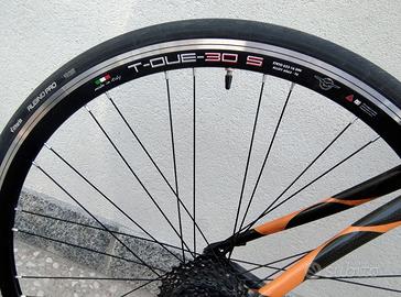 Causa inutilizzo, vendo bici da corsa Orbea "Onix Tour" con telaio e forcella in carbonio, taglia M. Cambio Shimano Ultegra 2 x 10 velocità, freni Shimano Ultegra a pattino, ruote (nuove) Gipiemme T2-30S. Ideale per il ciclismo su strada e l'allenamento su lunghe distanze. Include sella "Selle Italia" e pedali a sgancio rapido tipo Look Keo. Bici leggera, comoda e reattiva, con componenti di alta qualità. Ruote nuove, catena e copertoni praticamente nuovi, appena revisionata dal meccanico. Disponibile per visione e prova. Consegna preferibilmente a mano, oppure spedizione con corriere (da concordare). A parte, se richiesto, vendo computerino e abbigliamento tecnico. Altezza persona / Taglia bici da strada da 1,52 a 1,62 m XS – 48/50 da 1,63 a 1,68 m S – 50/52 da 1,69 a 1,74 m M o 52/54 da 1,75 a 1,80 m M/L o 54/56 da 1,81 a 1,88 m L o 56/58 da 1,89 a 1,96 m XL o 58/60