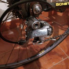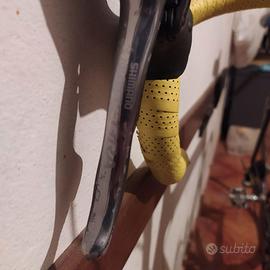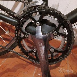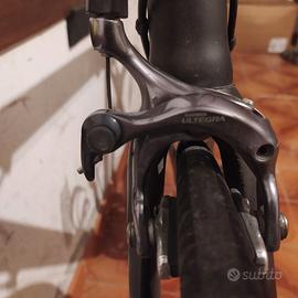 bici da corsa in carbonio (telaio, manubrio e bortaborraccia) taglia M, cerchi in alluminio con copertoncini nuovi e camera d' aria, componentistica shimano ultegra (freni e cambio). Normali segni di usura, vendo a malincuore per inutilizzo e per fare spazio in garage.
