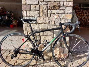 Vendo bici da corsa in carbonio taglia S. La bici presenta alcune parti spellicolate. Perfettamente funzionante, freni a spazzole, cambio shimano 105. Adatta a chi vuole cominciare.