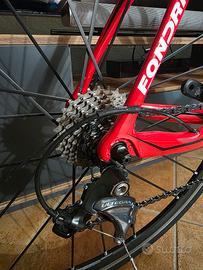 Telaio in carbonio Toray, forcella in carbonio Reflex, tubo sella ovalizzato in carbonio, sella Selle Italia, manubrio Deda, pattini freni nuovi, Cambio Shimano Ultegra 50/34 davanti e 11 velocità dietro, cavi cambio con pochi km, cerchi in alluminio fulcrum racing zero black (ultra leggeri, top di gamma della linea, ben tenuti).