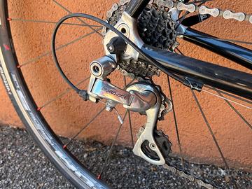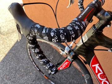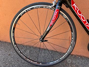 Bellissima bici da corsa Kuota Karma tg. xl completamente in carbonio. sella nuova e manubrio con fasce nuove Cinelli. La bici è funzionante in ogni sua parte, cambio e freni dura ace . Pedali nuovi che si possono usare sia con aggancio, che con scarpa da tennis, completi di tacchette per aggancio da montare sulle scarpe mai usate ne montate. camera d'aria di scorta e pipa manubrio più lunga. qualche piccolo segno da utilizzo. Vendo per ritorno a Mtb, la bici da corsa non fa per me.