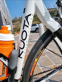 Bici da corsa Quota Kom Limited Edition taglia S, full carbon acquistata nel 2021 presso negozio specializzato a Verona, cambio e freni Shimano Ultegra (corone 12-30 posteriore), freni a tamburo, cerchi Mavic Cosmic Elite, copertoni Vittoria Rubino Pro, 2 porta borraccia, attacchi pedali mtb.