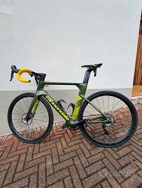 Vendo bici da corsa cannondale systemsix misura 56, corrispondente ad una L, monta manubrio in carbonio con cavi totalmente integrati e ruote bontrager da 30 in carbonio, la bici è sempre stata tenuta in ottime condizioni, manutenzione fatta da poco, nelle quale ho cambiato il manubrio con uno in carbonio e quindi ho sostituito tubi dei freni a disco e cavi del cambio, oltre alle pasticche dei freni e ai copertoni, infatti monta dei pirelli cinturato da 28mm latticizati.