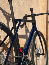 La bici è allestita con il nuovo gruppo SRAM RED 12v con power meter (cassetta 10/33 corone 48/35, pedivella 172.5), ruote DT Swiss ARC 1100 con mozzi 180, piega integrata Lapierre