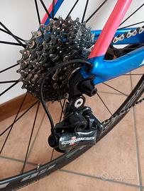 La bici taglia S-M è stata utilizzata dalla mia compagna alta 164 cm normopeso su piste ciclabili per 3 mesi ed è come nuova. Monta una sella Selle Italia SLR Max Super Flow, ruote Marchisio Carbon Race da 20 mm di profilo, tubolari Continental Gatorskin da 25 mm praticamente nuovi. I colori del telaio sono molto accattivanti quando la bici è esposta alla luce del sole. I freni sono direct mount, quindi assicurano una frenata affidabile. La bici ha accumulato solo 600 km complessivi!!