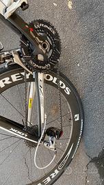 Le ruote originali della bici non sono profilate e montano un copertoncino da 25 (vedi ruota anteriore della prima foto) ma COMPRESO NEL PREZZO includo ruote Reynolds profilate con copertoncino da 23 per una maggiore performance.